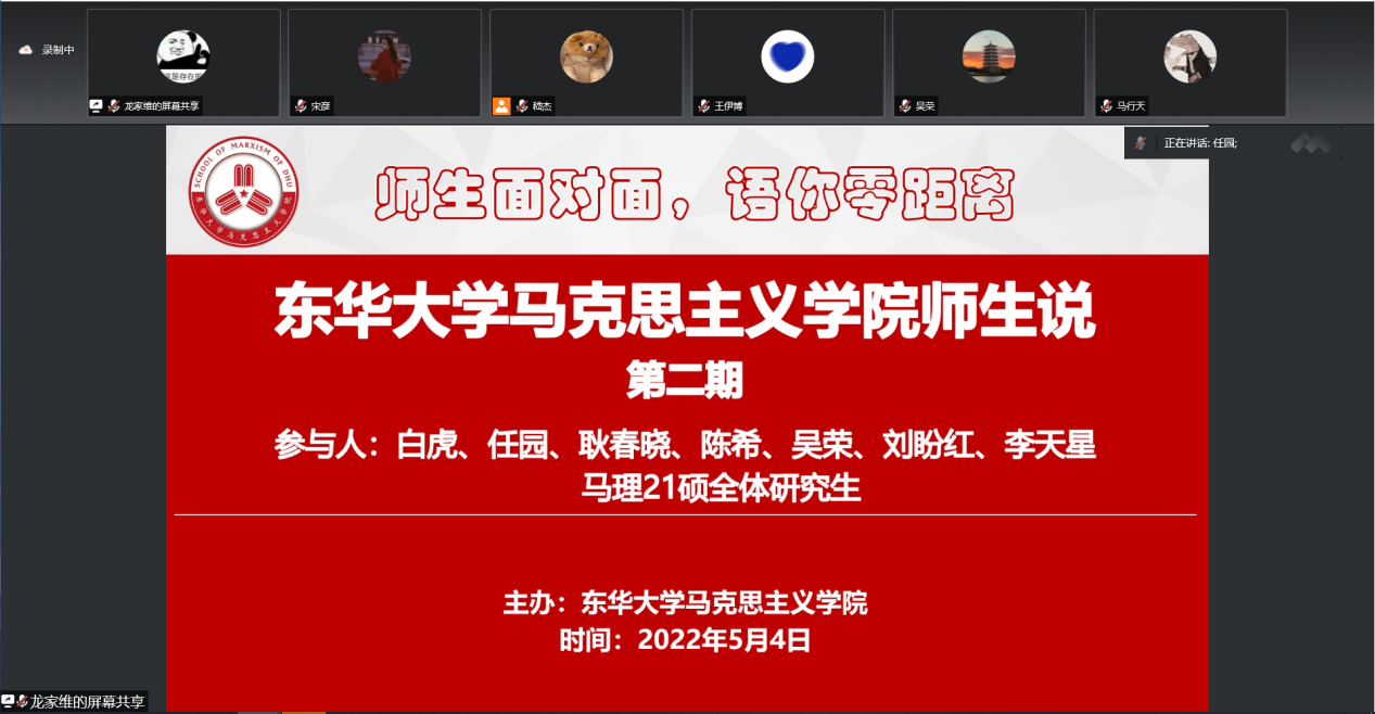54日,正值五四青年节,太阳集团9728举行了“师生说”系列主题活动第二期——“聊聊选题那些事”。本期主题活动由白虎、任园、耿春晓、陈希、吴荣、刘盼红、李天星七名青年教师与马理21硕全体研究生在云端面对面、零距离共话成长。