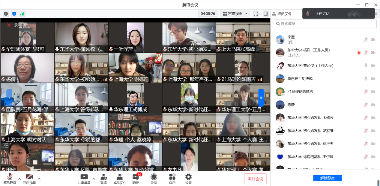 戴叶萍老师在开幕中指出,本次云知识竞赛恰逢其时,具有积极意义,既是学习贯彻习近平总书记在中国人民大学考察时的重要讲话精神的体现,又是对党史学习教育成果的巩固和拓展,能够更好地帮助我们回顾中国共产党百年奋斗辉煌历程,传承红色基因,坚定信念,以优异成绩迎接党的二十大召开。她希望大家时刻牢记习近平总书记的期望和要求,坚定不移听党话、跟党走,努力成长为堪当民族复兴重任的时代新人。