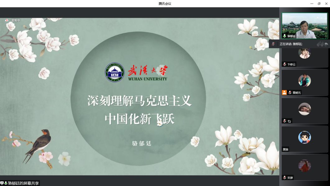 骆郁廷教授从马克思主义中国化的飞跃是发展的历史跨越、马克思主义中国化新飞跃是第三次历史飞跃、马克思主义中国化新飞跃是理论与实践的突破、马克思主义中国化新飞跃是新时代的新跨越四个方面展开。他指出,马克思主义中国化新飞跃是以第一次飞跃为前提、第二次飞跃为基础而得以升华的,实现了新时代理论与实践相统一的飞跃,开辟了理论与实践发展的新境界,并鼓励大家要明确自己作为新时代年轻人的责任和担当,要以马克思主义中国化新飞跃的创新理论成果和创新实践成果为指导,助力全面建成社会主义现代化强国,实现中华民族伟大复兴,完成中国由世界大国向世界强国的转变和跨越。