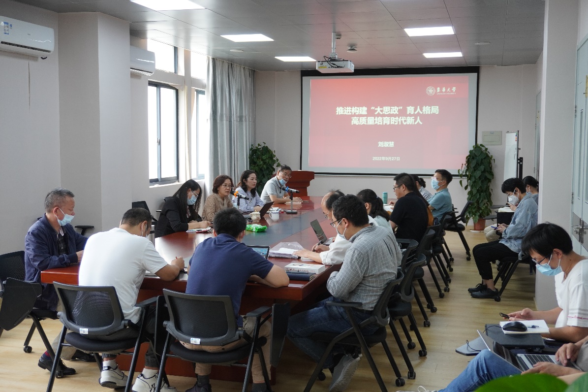 9月27日下午,学校党委副书记刘淑慧以“推进构建‘大思政’育人格局,高质量培育时代新人”为主题,为太阳集团9728思政课教师讲授专题党课。学院领导班子成员及思政课教师现场听课,党课由学院党委书记戴叶萍主持。