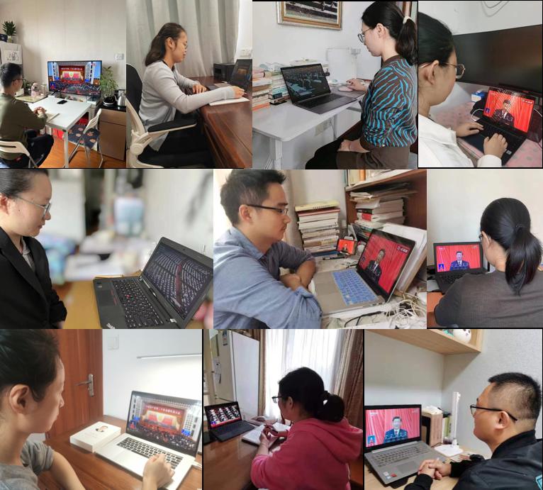 教师们居家学习收看大会直播