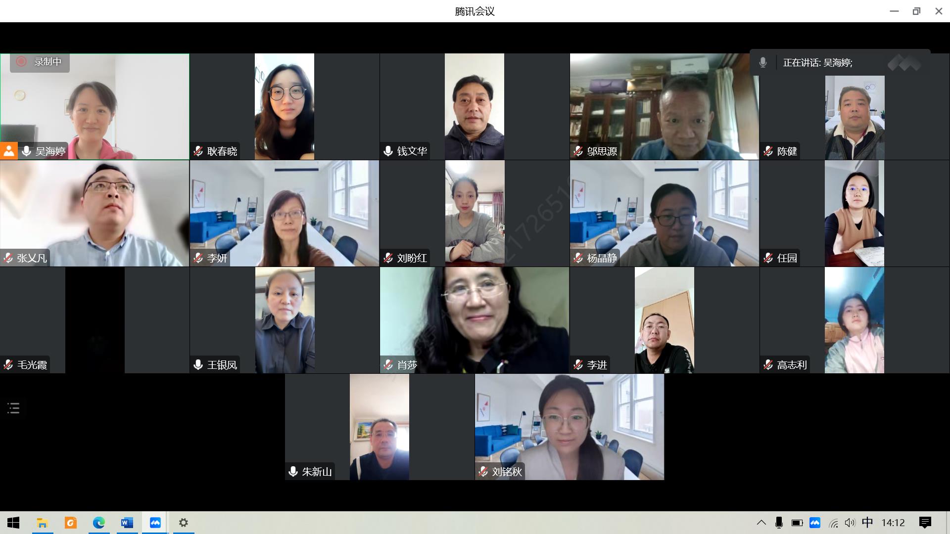 部分在校师生代表在会议室认真收看大会直播