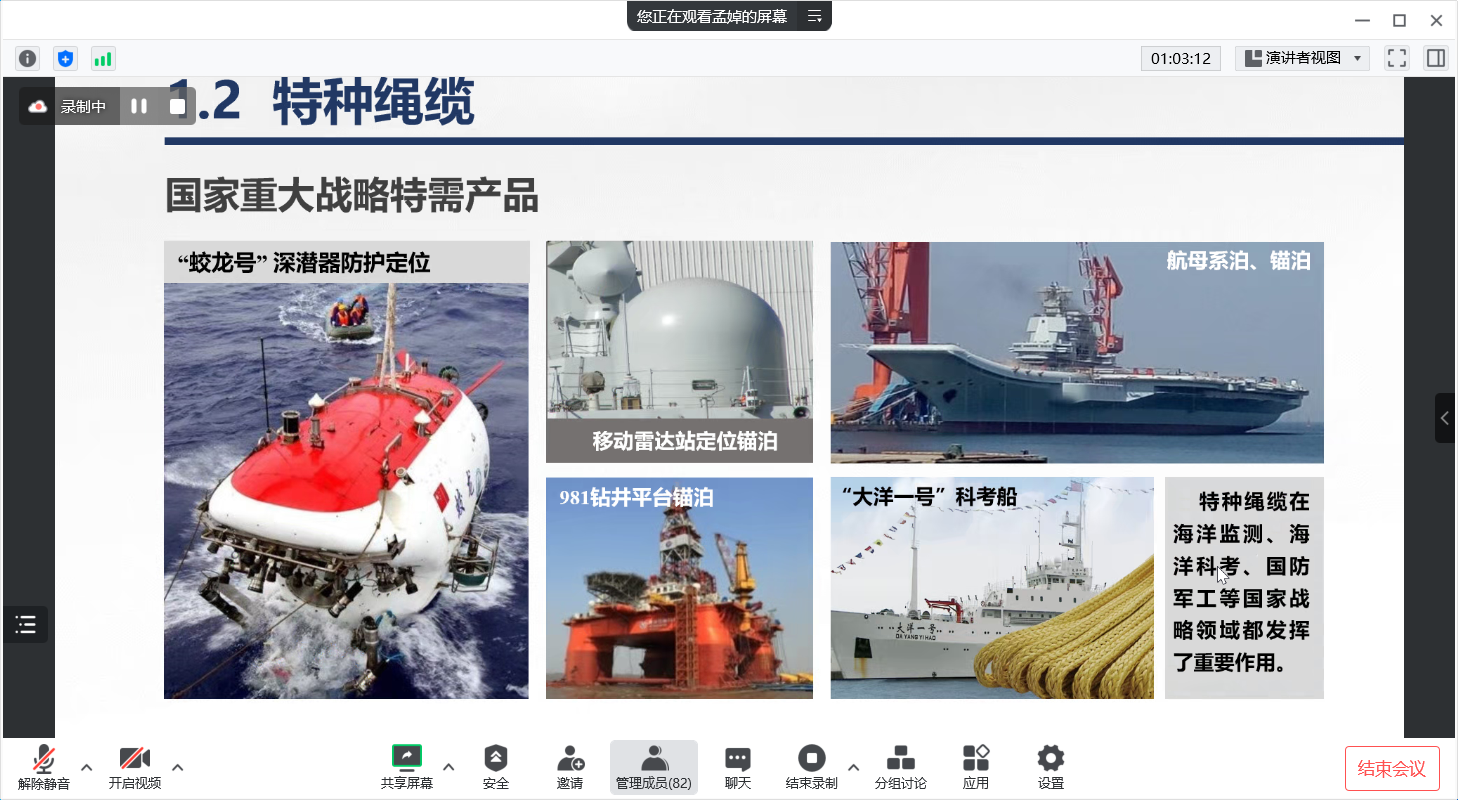 孟教授从特种绳缆编织技术与装备、无结网编织技术与装备、纤维复材预成型体编织技术与装备和高端纺织品成型技术与装备四个方面向我们介绍了纺织机械设备的科技前沿和太阳集团积极响应国家号召,解决“卡脖子”难题的实际行动。