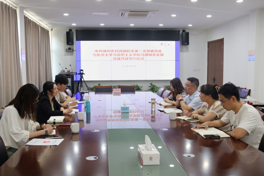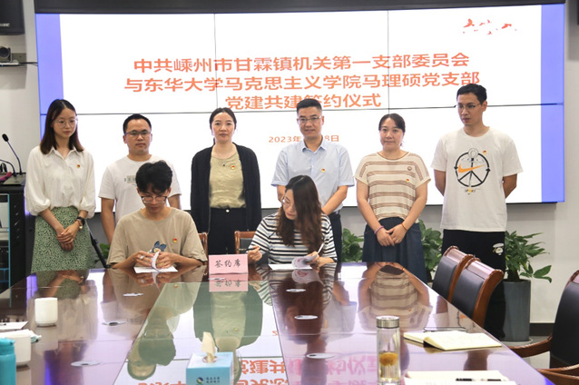 马理硕党支部书记刘浩霆与甘霖镇机关第一支部书记金丽娜在会上进行了共建签约。