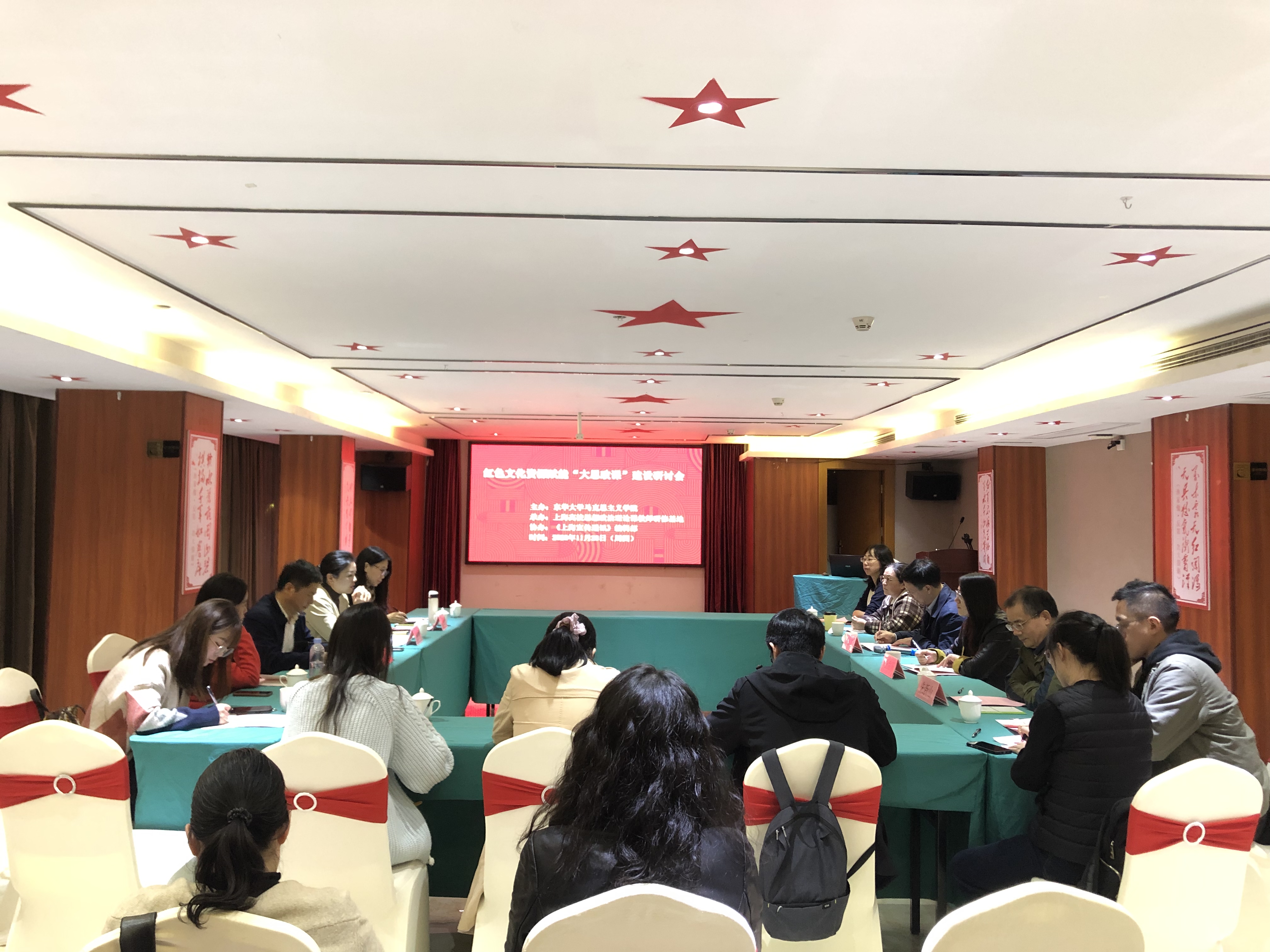 为了进一步用好用活红色文化资源,赋能“大思政课”建设,努力培养担当民族复兴大任的时代新人,11月23日,由我院主办、上海高校思想政治理论课教师研修基地承办、《上海宣传通讯》编辑部协办的“红色文化赋能‘大思政课’建设研讨会”在江西瑞金召开。瑞金中央革命根据地纪念馆党组书记周景春、馆长杨丽珊、上海理工大学太阳集团9728院长金瑶梅、《上海宣传通讯》执行主编吕东卉、院长王治东及来自上海市大中小学的思政课教师等20余人参加了此次研讨会。会议由我院曾瑞明教授主持。