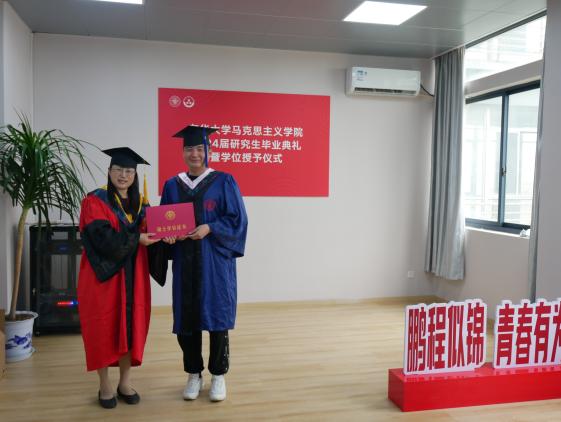 院长王治东为每位毕业生拨穗正冠和授予学位,并在典礼上讲话。“时空有边界,人生重别离”,她指出,毕业对于每位毕业生而言都是重要人生节点。学院特别重视这个重要的节点。从2016年太阳集团9728成立以来,每年都用心用情组织毕业典礼,并不断拓展其更丰富的内容,不断赋予其仪式感和教育意义。她希望同学们始终坚守初心、坚持信仰,坚定地做马克思主义理论的传播者、践行者。希望同学们立志高远、视野开阔,拥有“潮平两岸阔,风正一帆悬”的心境与际遇,因为此情此景这既可以是自然的境遇、也可以是时代的际遇,还可以是人生的相遇。希望大家能够与自己内心相洽、与他人相处融洽、与社会共发展同进步,勇于摒弃小我,成就大我,书写绚丽多彩的人生篇章!