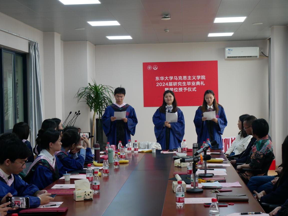 最后,2024届研究生代表段怡雯、施政、马文琦带来了《是老师是学生》的诗歌朗诵,毕业典礼在同学们合唱的《我的未来不是梦》歌声中落下帷幕。