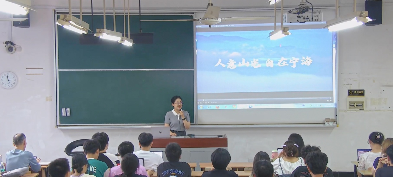 宁海县“缑火”青年宣讲团成员吴育佳老师以“人亦山光,自在宁海”为主题,为师生们深情讲述了宁海县双林村的故事。吴老师引领师生们穿越时空,回到了《徐霞客游记》中传奇的开篇之地——宁海县,吴老师特别提到宁海县双林村在生态环境保护、文化旅游发展以及工业转型升级等方面的成功实践。从生态治理到文化传承,从工业创新到非遗活化,每一个细节都彰显了宁海人民在新时代的奋斗精神与卓越成果。