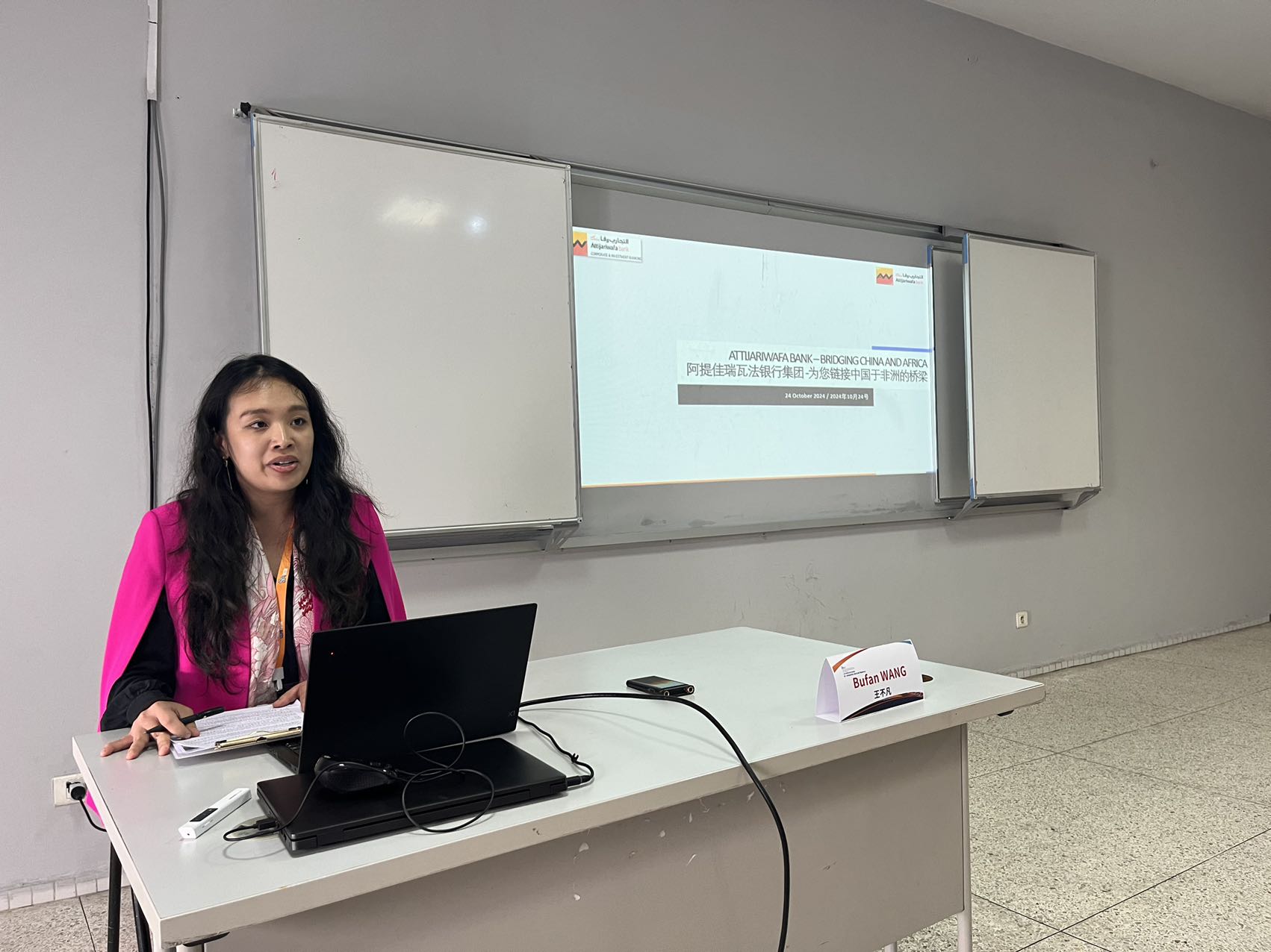 阿提佳瑞瓦法银行集团(Attijariwafa Bank Group)亚非关系部的贾丝汀·吴(Justine WU)回顾了中国和摩洛哥长期以来的友好交往历史,摩洛哥凭借优越的地理优势、丰富的矿产资源以及一系列自由贸易协定,吸引了越来越多的中国企业在此投资。多年来,中国在摩洛哥的投资主要分布在汽车、纺织品、建筑、电信、渔业等,摩洛哥已经成为中国企业海外投资的新热点,特别是在可再生能源和新能源汽车电池领域,这些投资不仅促进了摩洛哥的能源转型,也为该国的汽车工业发展注入了新活力。在新的形势下,摩洛哥的发展与中国紧密结合,中国式现代化的经验及中国发展对世界带来了积极的贡献,我们要进一步深化中摩合作的领域与方式,促进双方的共同发展。