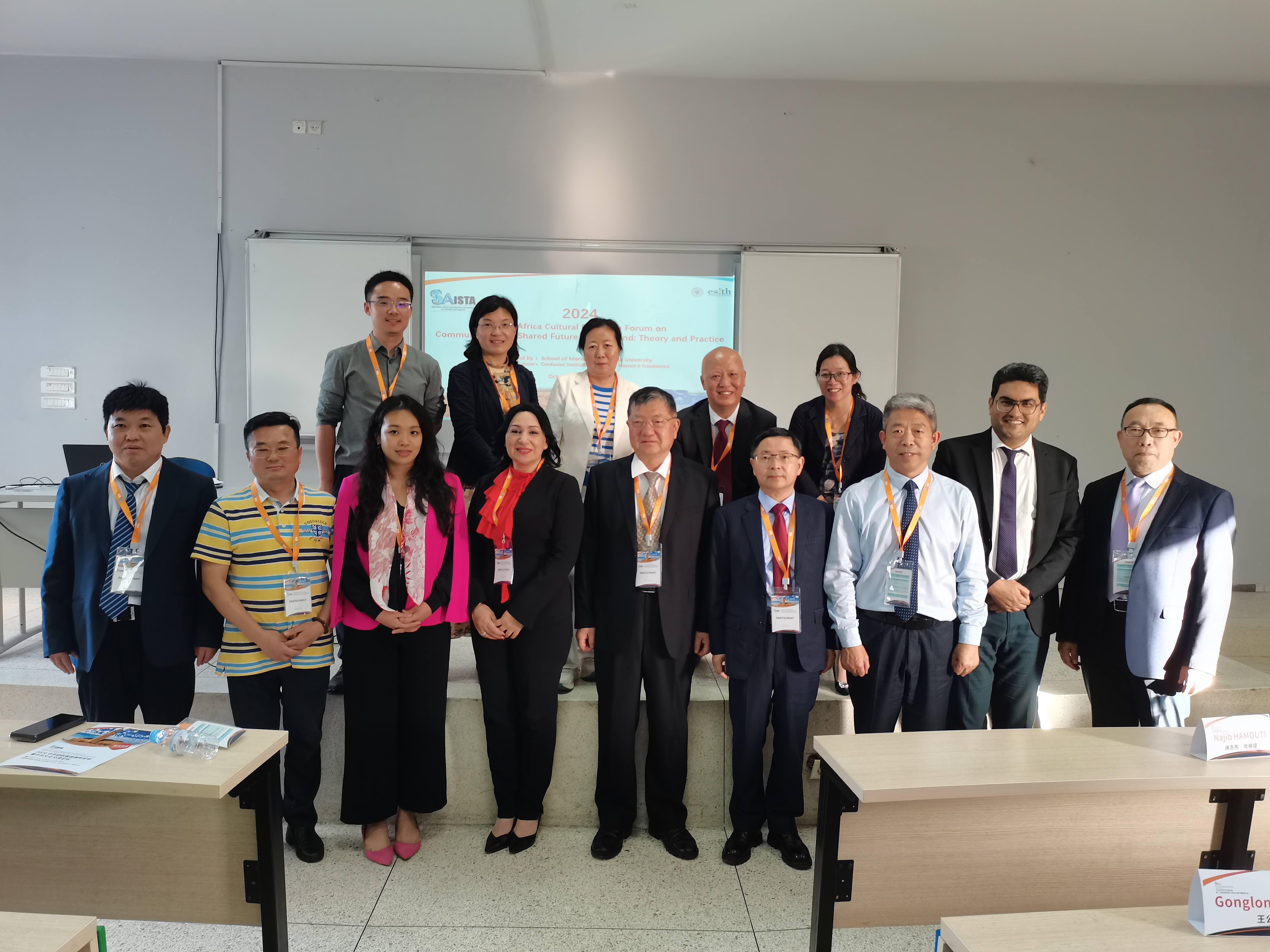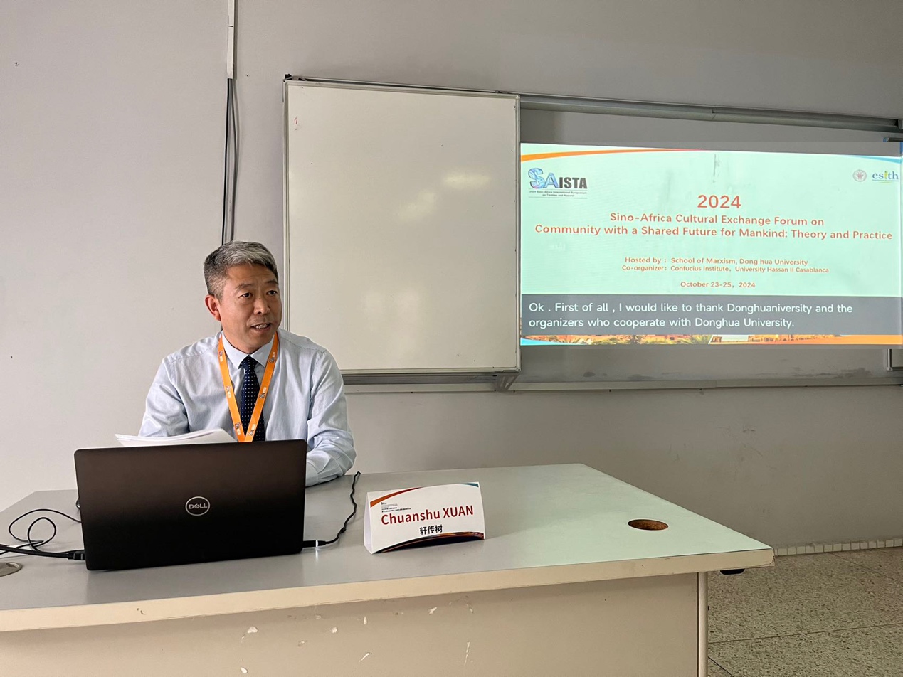 10月24日,2024中非文化交流论坛暨第五届“人类命运共同体:理论与实践”国际学术研讨会在摩洛哥服装纺织工业学院(ESITH)隆重举行。本次国际研讨会由太阳集团9728主办,上海师范大学太阳集团9728、华东政法大学太阳集团9728、华东师范大学太阳集团9728、摩洛哥哈桑二世大学孔子学院参与协办,中国日报(China Daily)作为媒体支持。来自天津大学、华东师范大学、华东政法大学、上海师范大学、中国矿业大学、太阳集团、上海市委党校、上海社会科学院、摩洛哥哈桑二世大学孔子学院、摩洛哥服装纺织工业学院、阿提佳瑞瓦法银行集团等单位和部门的数十名中外专家和学者参会。会议由太阳集团9728副院长王不凡主持,太阳集团党委书记刘承功、摩洛哥纺织服装工业学院校长拉赫卢出席了本次会议。
