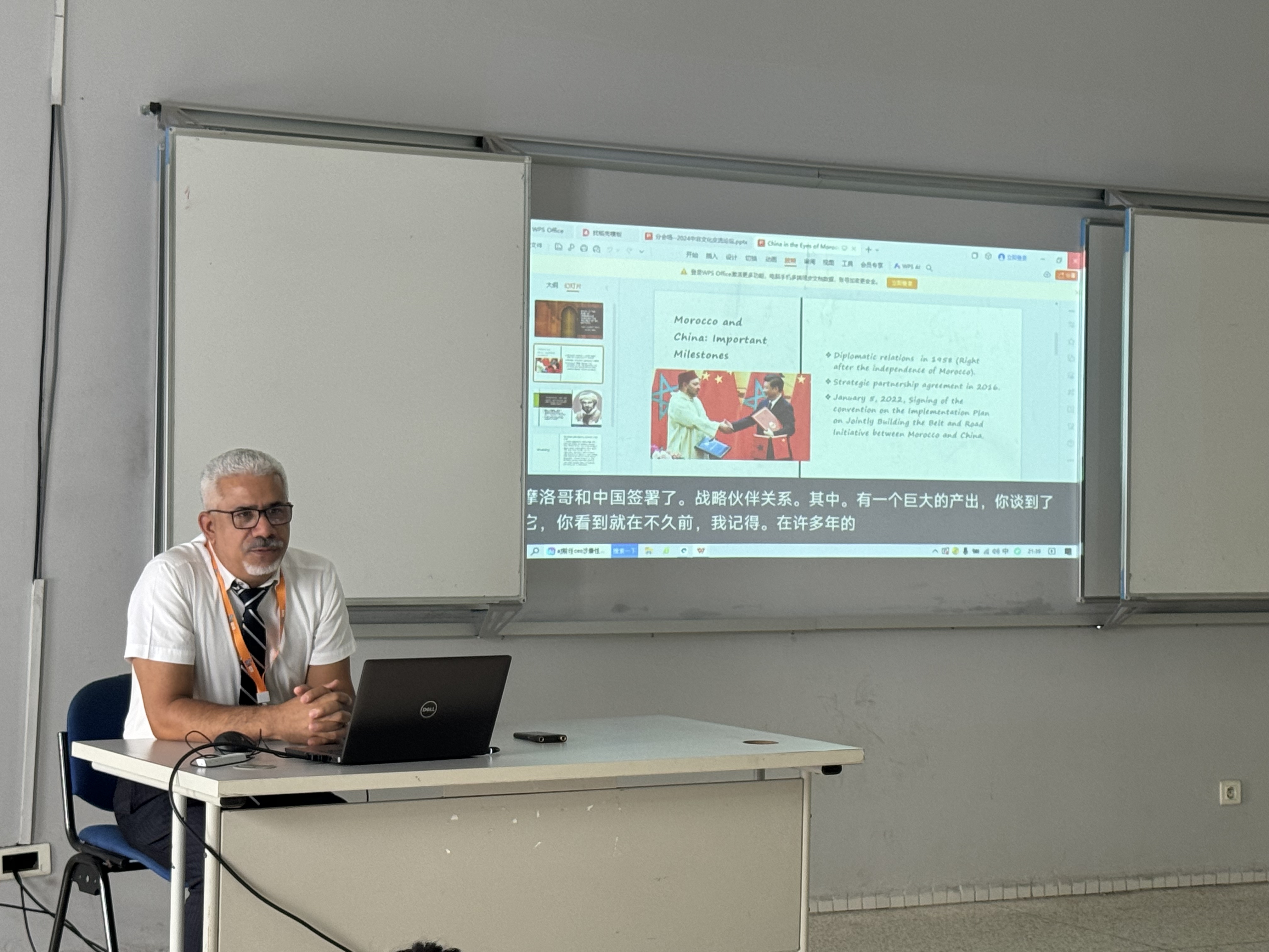 中摩友好交往源远流长,文化交流架起了中摩两国民心相通的桥梁。摩洛哥纺织服装工业学院国际关系部部长纳吉布·哈穆提(Najib HAMOUTI)教授介绍了“伊本·白图泰游记中摩洛哥人眼中的中国”。纳吉布指出,700多年前摩洛哥旅行家伊本·白图泰在《伊本·白图泰游记》中详述了当时中国社会发展的盛况,白图泰曾到过广州、泉州和北京,他向全世界介绍了中国丰富多彩的风土人情。纳吉布分享了自己到访中国的经历,他指出,摩洛哥是最早与新中国建交的非洲国家之一,也是首个与中国签署共建“一带一路”合作规划的北非国家。长期以来中摩人文交流精彩纷呈,助力双方战略伙伴关系深入民心。中摩保持各层级友好交往,两国不断推动战略合作伙伴更上一层楼符合双方根本利益。