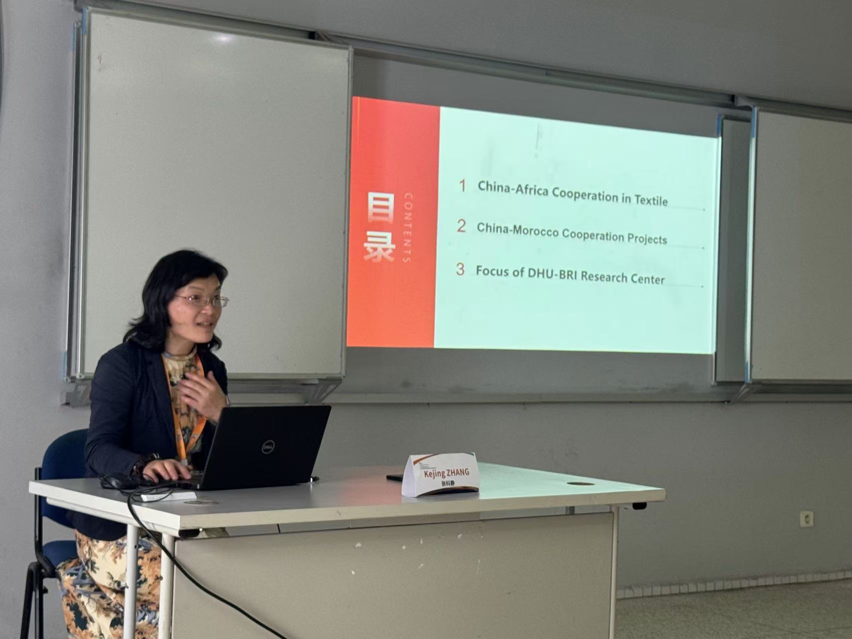 (摩洛哥纺织服装工业学院国际关系部部长纳吉布·哈穆提教授发言)