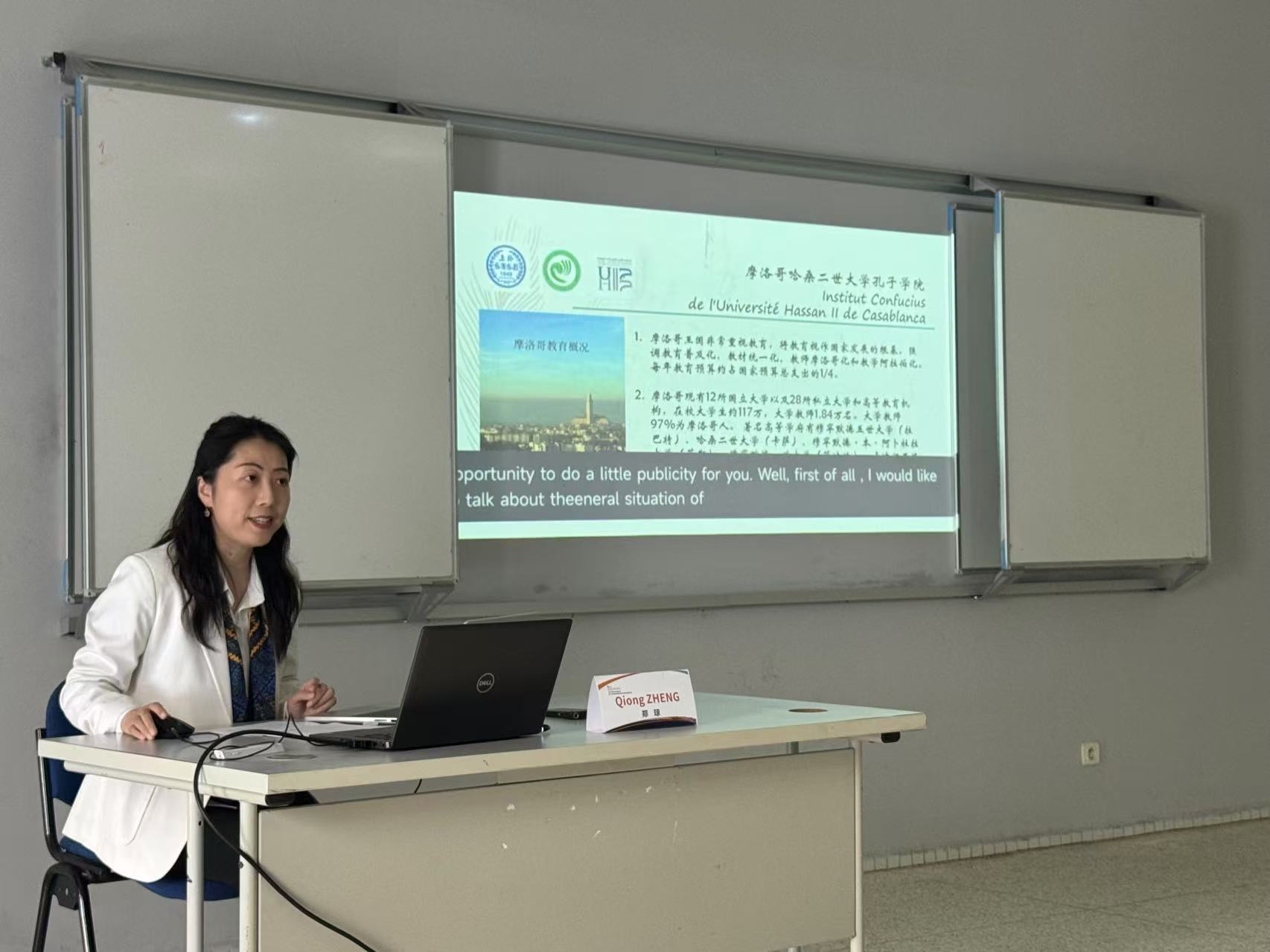 (摩洛哥哈桑二世大学孔子学院中方院长郑琼发言)
