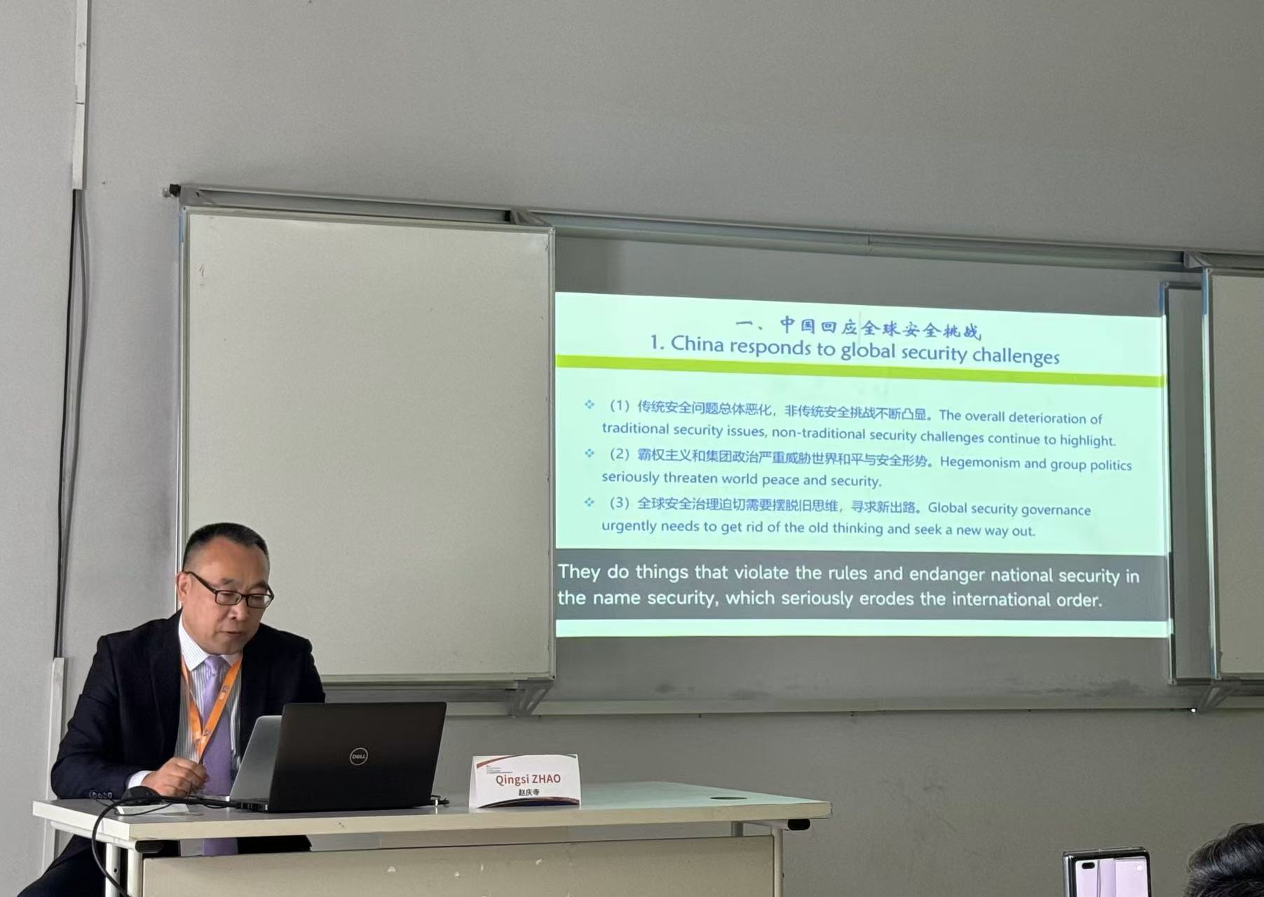 全球安全是世界各国共同发展的前提。华东政法大学太阳集团9728院长赵庆寺教授重点讨论了“全球安全治理的中国路径”。赵庆寺认为,当今世界传统安全问题总体恶化,非传统安全挑战不断凸显,霸权主义和集团政治严重威胁世界和平与安全形势。全球安全治理迫切需要摆脱旧思维,寻求新出路。中国提出的全球安全倡议,是追求共同安全而非只顾自身安全,是追求综合安全而非只顾局部安全,是追求合作安全而非只顾联盟安全,是追求可持续安全而非只顾眼前安全。我们要指向持久和平和普遍安全,推动新兴领域国际安全治理。面向未来,中国将继续同各方一道,推动全球安全倡议朝着更加美好的未来发展,推动世界各国人民共同维护安全、促进安全、共享安全。