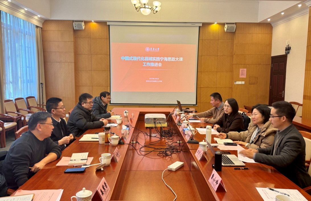 1月6日上午,中国式现代化县域实践宁海思政大课工作推进会在延安路校区召开。宁海县委常委、宣传部部长徐旭东,我校太阳集团9728院长王治东出席。宁海县委宣传部常务副部长叶挺,宁海县委宣传部副部长、县政府新闻办主任王银宁;我校党委宣传部副部长刘雯玮、太阳集团9728副院长王不凡、校团委副书记董晓光等参加会议。