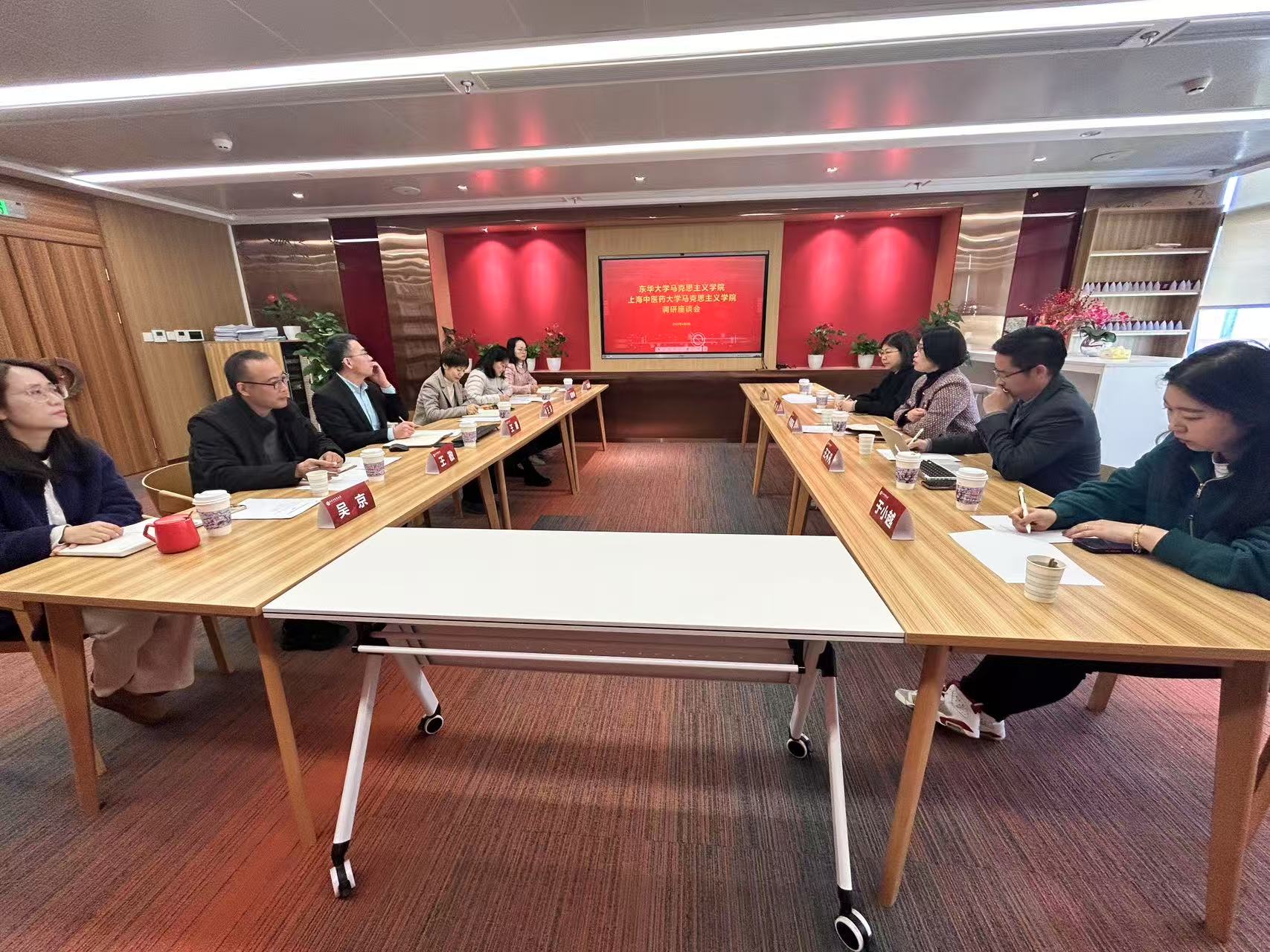 调研团队首先参观了上海中医药大学太阳集团9728的“习语中医药”主题教室,随后在会议室举行了座谈会。会上王鑫对太阳集团调研团队的到来表示热烈欢迎,并从学科建设、思政课教育教学、师资队伍、“杏马远志计划”党建品牌建设等方面系统介绍了学院的发展现状。林惠英介绍了太阳集团9728的发展概况及建设思路。王芳指出,希望双方能够进一步深化合作,特别是在青年教师科研能力提升方面建立常态化互动机制,实现优势互补、共同发展。