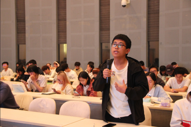 最后,同学们就自己关心的话题与郁崇文教授交流互动,现场气氛热烈。学生纷纷表示获益良多,报告深入浅出、生动形象、干货满满,进一步增强了对于麻纺织的历史和前沿的了解。数学与统计学院学生张梁感慨到:“郁教授的讲述像铺开一幅未来画卷,让我明白丝麻材料的创新离不开数学建模与数据解析,专业知识原来与产业发展联系这么紧密。”环境学院学生张欣悦则认为:“一缕麻线串起《诗经》与航天材料,这场讲座让我看到民族智慧在科技中历久弥新。