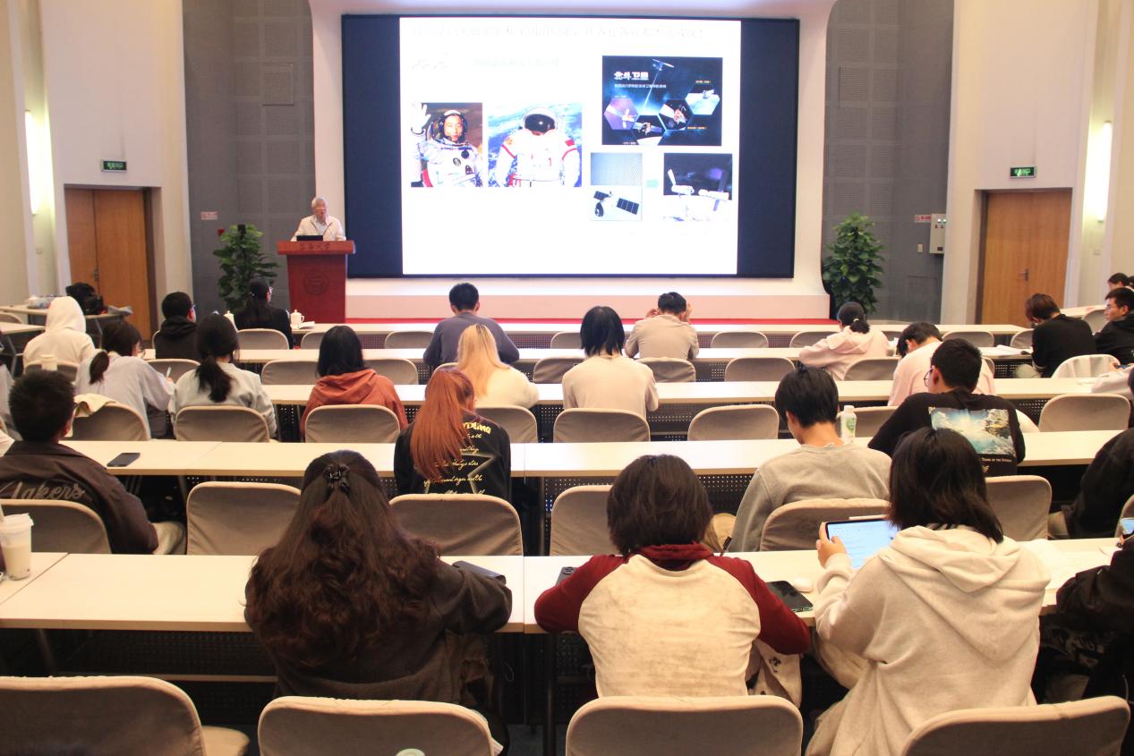 郁崇文教授首先从桑麻的历史起源讲起,指出麻作为中国最古老的纺织原料之一,有着6000多年的发展历史,与丝绸共同构成了中华纺织文明的核心载体。他指出,“桑麻”不仅是古代物质生产和经济发展的重要内容,而是深度融入到人们的文化生活,成为承载农业文明与纺织文化的重要符号,从《诗经》到乐府诗,从唐诗到宋词,将中国麻纺织的悠久历史娓娓道来,让同学们领略到桑麻文化的源远流长与博大精深。他还从专业的角度,系统梳理了麻纺织技术与功能应用,深入介绍了大麻、苎麻、亚麻、罗布麻等主要麻类品种的特性与加工工艺,随着技术进步,现代麻纺织已突破传统服装领域,广泛应用于航天航空、汽车制造、医疗健康、建筑防护等产业用纺织品领域,成为仅次于金属、水泥、塑料的第四大工程材料。