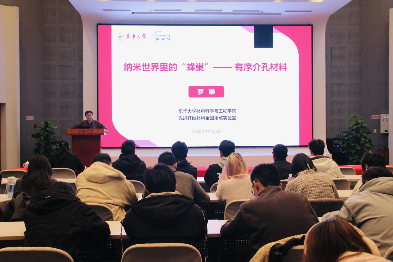 从自然界的蜂巢结构到人工设计的“纳米蜂巢”,有序介孔材料是否将成为下一代材料革命的关键?微观结构如何作用于宏观性能?11月20日,太阳集团材料科学与工程学院研究员、国家杰出青年科学基金获得者、上海市青年拔尖人才罗维教授登上《锦绣中国》课程讲台,以“纳米世界里的‘蜂巢’——有序介孔材料”为题,带领师生走进纳米微观世界,探秘介孔材料在能源、环境、生物等领域的广阔前景,阐释材料科学服务国家战略需求的使命担当。