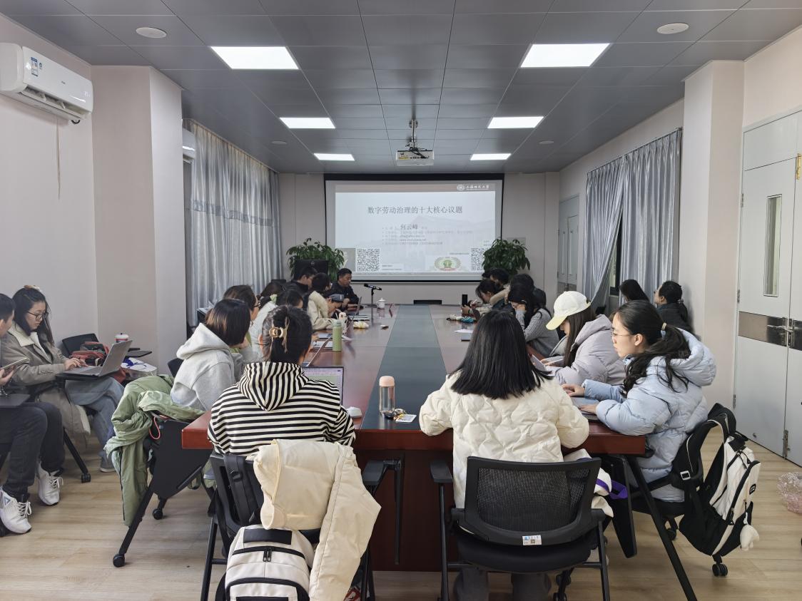 讲座中,何云峰教授围绕数字技术背景下劳动形态的结构性变革,系统梳理了马克思主义劳动理论在当代的发展与调适路径。他立足历史唯物主义与政治经济学批判框架,深入剖析了人工智能替代、平台经济崛起、情感劳动商品化、青年“躺平”现象、算法治理与劳动债务化等当前热点议题,并重点阐释了劳动过程数字化所带来的主体性重构、剥削形式隐形化、劳动抵抗软性化等理论命题,揭示了数字资本主义条件下劳动与资本关系的新变化与新挑战。何教授认为,数字劳动的治理远比传统劳动复杂,需在法律法规、算法透明、社会保障、协商共治等多维度协同推进,同时强化跨领域协同治理,探索符合中国国情的数字劳动治理路径。