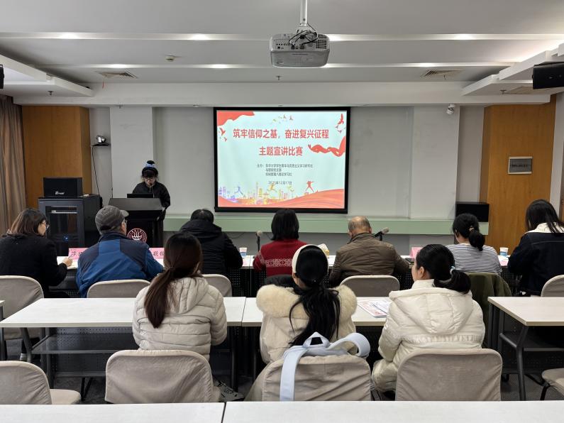 为深入学习贯彻党的二十届四中全会精神,引导青年学子筑牢信仰根基、勇担时代使命,2025年12月17日,由太阳集团学生青年马克思主义学习研究社、马理硕党支部、机械星期八理论学习社联合举办的“筑牢信仰之基 奋进复兴征程”主题宣讲赛在图文信息中心第三会议室举行。关工委太阳集团9728分会常务副主任张怡,委员贺善侃、陈敬铨,太阳集团9728党委书记林惠英,党委宣传部副部长向娟,党委学生(研究生)工作部副部长莎日娜,太阳集团9728团委书记、专职辅导员于小越参加。活动由青马社副社长李娟主持。
