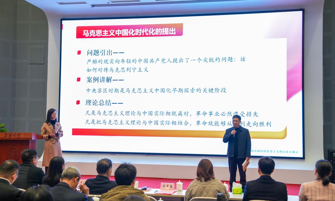 张华明、李妍、王淑芳、贺羡、张乂凡等五位思政课教师与校外思政实践教学导师,分别围绕《党史》《毛泽东思想和中国特色社会主义理论体系概论》《思想道德与法治》《形势与政策》《习近平新时代中国特色社会主义思想概论》等课程,联合开展双师同讲思政课专题教学展示与授课。