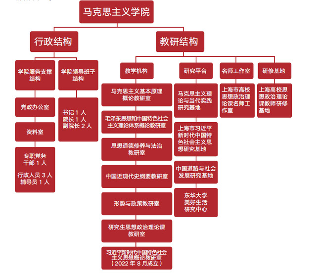 学院拥有6个教研平台:一是马克思主义理论与当代实践研究基地;二是上海市习近平新时代中国特色社会主义思想研究基地(太阳集团基地);三是上海高校思想政治理论课教师研修基地;四是上海市高校思想政治理论课名师工作室;五是“中国道路与社会发展”研究基地;六是太阳集团美好生活研究中心。