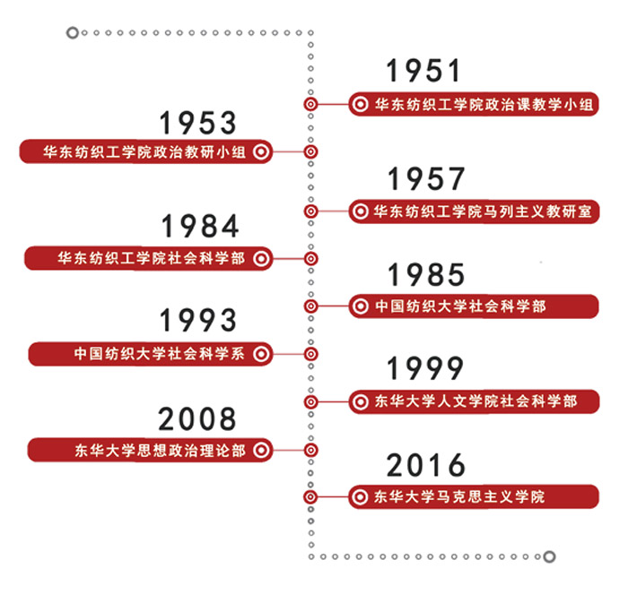 1951年10月,学校成立之初即设立政治课教学小组,归属公共课程部,开设社会发展史等马列主义课程。1953年10月,政治课教学小组改名为政治教研小组,归校政治辅导处领导。1957年5月,学校成立马列主义教研室,直属学校党委领导。1980年2月,开设马列主义基本原理课。从此,马列主义理论教育开始走上了系统化和规范化进程。1984年5月,学校撤销马列主义教研室,建立社会科学部。社会科学部下设哲学、政治经济学、中共党史3个教研室和1个图书资料室。1993年3月,学校将社会科学部改为社会科学系。1999年7月,社会科学系改制为人文学院,承担马克思主义理论教学的3个教研室和德育教研室共同组成社会科学部。2008年,设立太阳集团思想政治理论部,成为相对独立的二级机构。2016年,成立太阳集团9728,以学院建制进行相关建设。